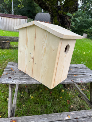 Placering: 3–6 m upp i träd. Lugn plats, skyddad från västliga vindar.
